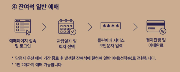 - 일반 예매(잔여석): 8월 27일(수) 14:00부터 선착순